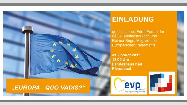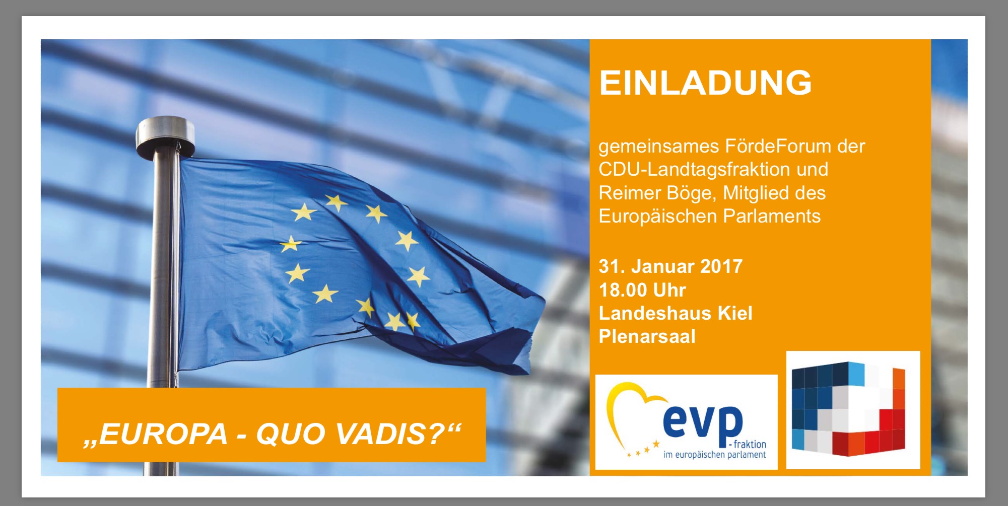 Im Namen der CDU-Landtagsfraktion laden wir Sie recht herzlich zum nächsten FÖRDEFORUM - „EUROPA - QUO VADIS?“ ein.