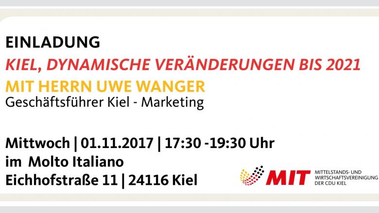 Die MIT Kiel lädt Sie herzlich ein zu einem Treffen mit Herrn Uwe Wanger, Geschäftsführer Kiel-Marketing.