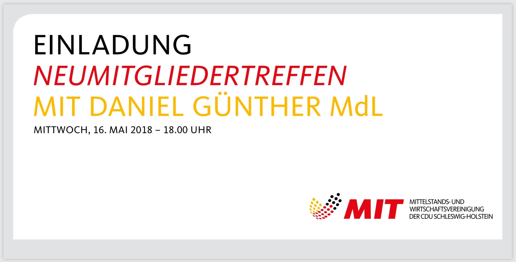 Das jährliche Treffen im Landeshaus mit unserem Ministerpräsidenten Daniel Günther MdL ist ein Empfang für unsere Neumitglieder der Mittelstands- und Wirtschaftsvereinigung (MIT) im Landesverband Schleswig-Holstein.